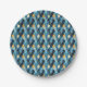 Pretty blue and gold modern pattern paper plates for birthdays, graduation any occasion.