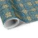 Festive Blue and Gold Four Photo Christmas wrapping paper.
