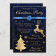 Blue and Gold Reindeer and Tree Christmas Party Invitation