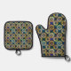 Blue and gold Sunflower Batik pattern on these one of a kind oven mitts and pot holders