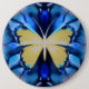 A beautiful blue and gold tie dye butterfly button for tote bags, jackets, and more.