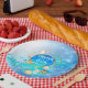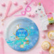 Bring some sea vibes to your party with this under the sea themed paper plate. Featuring sea shells and stars in blue and gold. Personalise it with your names and date.