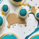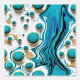 Pretty abstract ai art with blue and gold hues of water cascading down in a waterfall surrounded by blue and gold bubbles. This abstract art has a pour painting look with blending colours and cells.