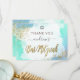 Modern elegant Bar Mitzvah thank you card featuring watercolor blue background and gold confetti on the sides. Personalise with your message and name.