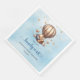 Unleash the charm of your boy baby shower party with the enchantingly designed napkins, graced with the illustration of an adorable baby bear. The bear, tenderly cradling blue and ivory balloons, descends from a sky blue canvas, evoking a sense of whimsical innocence. This charming 'Baby bear with balloons' napkin design perfectly captures the spirit of joyous celebrations, making it an unparalleled choice for creating an eternal memory of your special occasion.