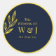 Elevate your wedding stationery and decor with our Luxury Bride and Groom Monogram Sticker. This exquisite sticker features a rich dark blue background encircled by a striking gold frame, creating a sense of opulence and sophistication.