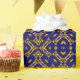 This designer wrapping paper design has an original Tribal-inspired pattern in faux golden tones on a royal blue background. It will certainly make your gifts stand out!