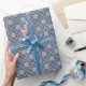 Blue and Gray Geometric Moroccan Tile Pattern Wrapping Paper