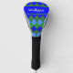 Blue and Green Argyle White Stitching Personalised Golf Head Cover