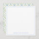 This personalised square note card features a lattice pattern of green vines and blue bows and ribbons on white. Personalise the front with your choice of name or special text in matching blue and white.