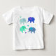 Cute baby boy's tee with adorable graphics of blue, turquoise, and mint green patterned elephants and colourful hearts. Customise to add you own text.