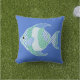 Add a little summer colour to your outdoor living space with this royal blue mildew resistant pillow, with a fun blue, green, and white multi patterned fish. Customise and add some text to make this your own.