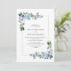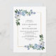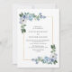 A blue wedding theme design with a dusty blue back and blue and white painted flowers with green foliage. A perfect design for your summer, spring and winter wedding. You can personalise the text and colour detail on this wedding invite template.