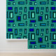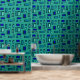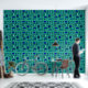 Light Blue and mint green rectangles and squares on green background. Simple and colorful pattern