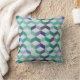 Green and blue geometric pattern pillow. Made in the U.S.A. from the highest quality cotton or polyester. Decorative throw pillows with a geometric pattern in contemporary colours. Available in 16 or 20 inch square and 13" by 21" rectangular sizes. Insert included. (Also available as a patio or garden pillow, just select outdoor from the Fabric tab and choose the size you need).