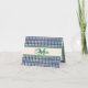 Blue and Green Gingham Plaid Tartan Monogram Note Card