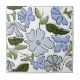 Blue and Green Hand Drawn Floral Block Print Ceramic Tile