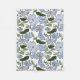 Blue and Green Hand Drawn Floral Block Print Fleece Blanket