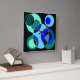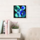 Blue and green intersecting circles design square wall clock