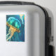 Blue, green, and gold jellyfish drift through blue ocean waters on this magnet. Perfect for anyone who loves the ocean and marine life.