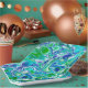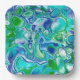 Blue and Green Marble Fluid Art Abstract Paper Plate