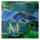 This tile features an elegant and glamourous blue and green agate marble background with faux gold glitter accents. The monogram combines handwritten script and modern sans serif fonts for a classy and sophisticated look. This will make the ideal gift as it can be customised with a name and initial. The sequins and distressed texture creates the perfect blend of chic and grunge.