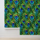 Blue and Green Peacock Feathers Collage Wallpaper