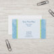This business card features blue and green stripes with white polkadot patterns on the right and left sides. Your business information goes in the centre in a pretty blue colour.