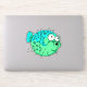 The cutest little cartoon puffer fish. Also known as a porcupine fish. In a soft blue and green with big bug eyes. Great gift for anyone who loves fish and ocean designs.