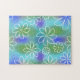 A floral pattern design, this jigsaw puzzle displays drawings of flowers on a blue and green background. This is perfect for anyone who is looking for a challenging jigsaw puzzle. Get yours today!