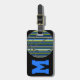Sporty blue, green, black, navy, white and grey striped basketball with blue varsity style monogram. Reverse is stripe pattern with blue varsity style personalised text. Basketball art in sporty blue, green, black, navy, white and grey stripes. The colours are energetic, athletic and 100% cool.
