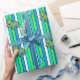Blue and green Striped Dinosaurs Birthday Wrapping Paper