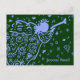 Blue and green trumpet angel postcard