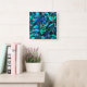 Blue and Green Wavy Metallic Look Square Wall Clock
