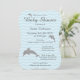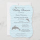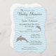 Elegant blue and grey baby shower invitations with cute dolphins. Custom party invites with ocean sea animal. Cute gender neutral vector design for boys and girls. Customisable bracket cut out shape. Custom background colour with chevron pattern. ie yellow, grey, teal blue, purple or pink. Beautiful stylish script typography with cute zigzag stripe print. Personalizable template with RSVP and registry line. Sweet babyshower cards for your little prince or princess. Classy paper designs for pregnant women / mum to be. Adorable grey fish illustration. Ocean / beach theme.