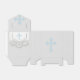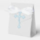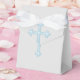 Elegant pearl blue cross blue and grey first communion, baptism and christening favour boxes. This beautiful blue cross first communion favour box can be customised with text and the background and bow colour of your choice.