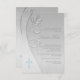 Elegant silver grey swirls and cross blue first holy communion invitation. This beautiful blue and grey first communion invitation is easily customised for your event by adding your event details, font style, font size & colour, and wording.