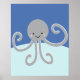 Blue and Grey Ocean Sea Life Octopus Nursery Art Print 4 of a set of 4. See matching prints in my Zazzle store.