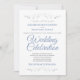 This beautiful wedding invitation features a simple and classic design of blue and grey text on a white background with silver faux foil floral borders. Chic and elegant design that is both formal and simple, with beautiful script lettering.
