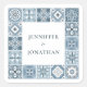 Blue and grey Spanish tiles invitation Square Sticker