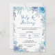 Light blue and grey wedding invitation, watercolor floral template, delicate, elegant, modern style.