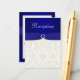****PLEASE NOTE that the ribbon and jewels are print images, and are not real. This blue and ivory damask reception card matches the wedding invitation and other items shown below.