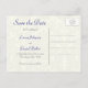 Blue and Ivory Damask Save the Date Postcard