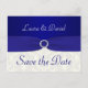 ****PLEASE NOTE that the ribbon and jewels are printed images, and are not real. This royal blue and ivory damask save the date post card matches the items shown below.