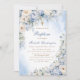 Blue and ivory flower baptism invitation. A lovely blue and ivory watercolor floral cross invite. Mark this special occasion with invitations that truly reflect its importance. Let us help you make your child's baptism a cherished memory for everyone involved.
