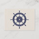 Nautical themed wedding enclosure reception information card done in blue and ivory, with vintage artwork of a ship's anchor, on the front and a ship's steering wheel, on the back. Ivory text, on the front, is ready to personalise for your wedding. Matching nautical themed wedding products are available.