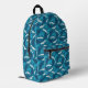 Whether you're fishing for trout or fishing for compliments you'll get the job done with this backpack. It features simple illustrations of trout fish in ivory, teal blue and navy blue set against a cool blue background.
