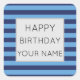 Blue And Light Blue Striped Happy Birthday Square Sticker