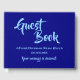 This simple guestbook features the messages "Guest Book" and "Your message is desired!", along with a custom event/occasion date and description. The text is coloured light sky blue, and the background is coloured blue. A generic, customisable guestbook like this could perhaps be used at an event such as a wedding, a family reunion, a retirement party, a baby shower, or some other event.