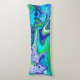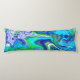 Blue and lime green trendy pattern and white abstract pour painting effect long body pillow.